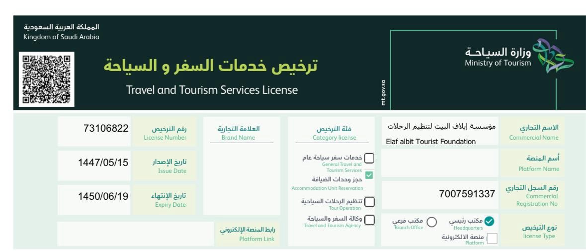 ترخيص وزارة السياحة